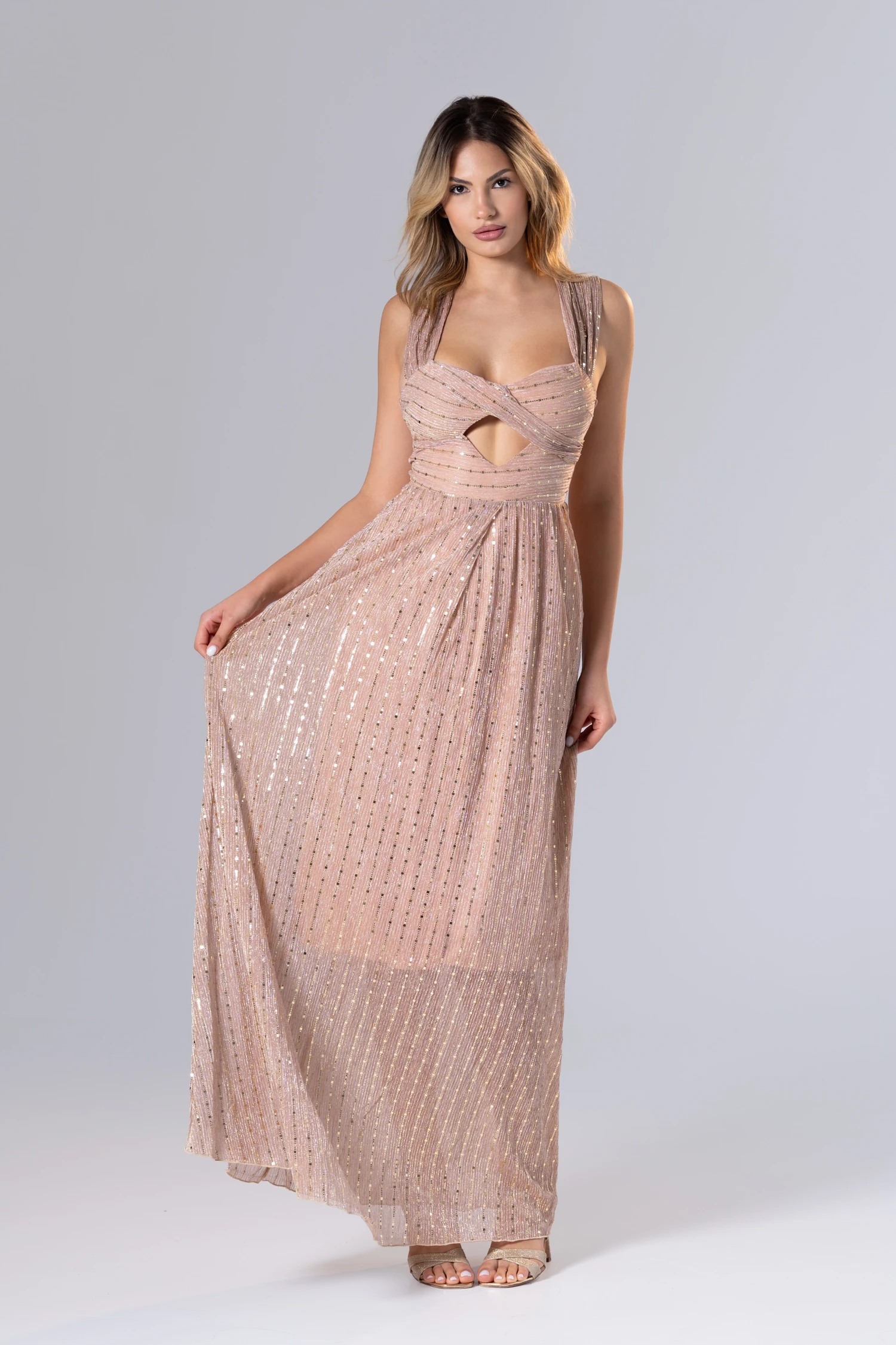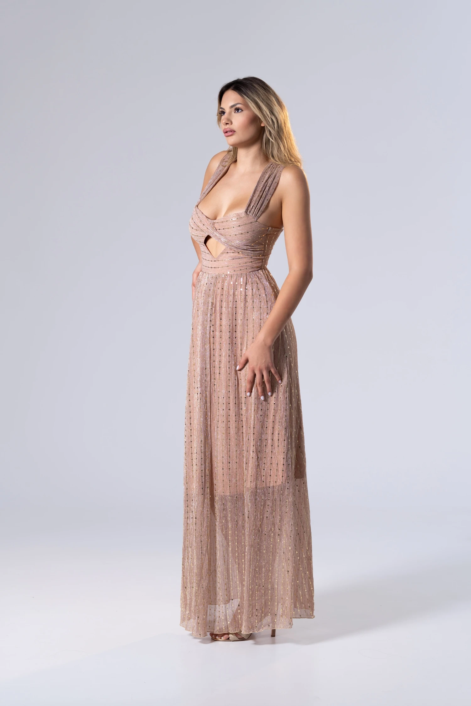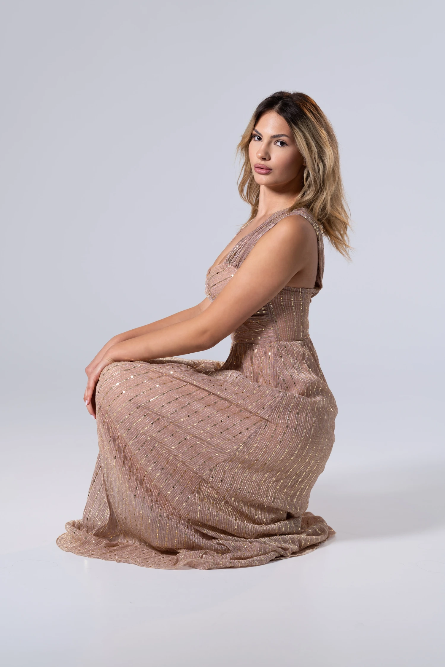 Este o piesă perfectă pentru evenimente de gală, petreceri elegante, cine festive sau serile în care îți dorești o rochie spectaculoasă, dar confortabilă, cu o strălucire discretă și rafinată.